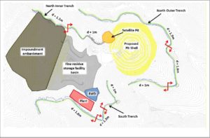 - Upstream of the mine, diversion trenches have been constructed to prevent storm water pollution by the mine operations, by diverting it around the operation;